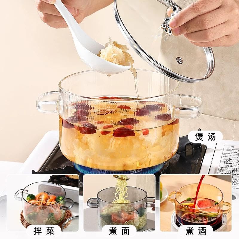 Generic - قدر طهي زجاجي مع غطاء، قدر مقاوم للحرارة مع غطاء، أواني طهي على الموقد، أواني طهي زجاجية للمعكرونة والحساء والحليب وأطعمة الأطفال (الشكل 3)