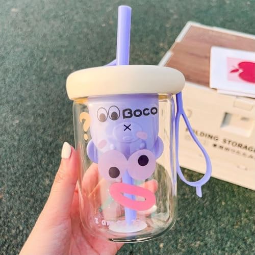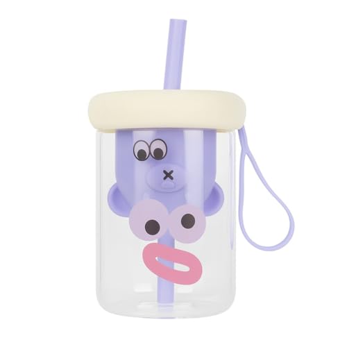Generic - كوب شرب زجاجي مع شفاطة سيليكون، مانع للتسرّب مع غطاء، خالي من مادة بيسفينول أ، مناسب للماء والعصير واللبن (أرجواني) سعة 480 مل