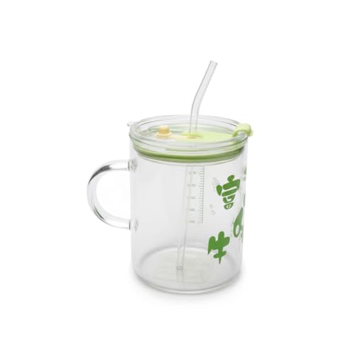 Generic - كوب زجاجي مع ماصة ومقبض، 600 مل مانع للتسرب مع غطاء محكم، كوب شرب قابل لاعادة الاستخدام للقهوة المثلجة والعصير والحليب والشاي، سهل التنظيف (اخضر)