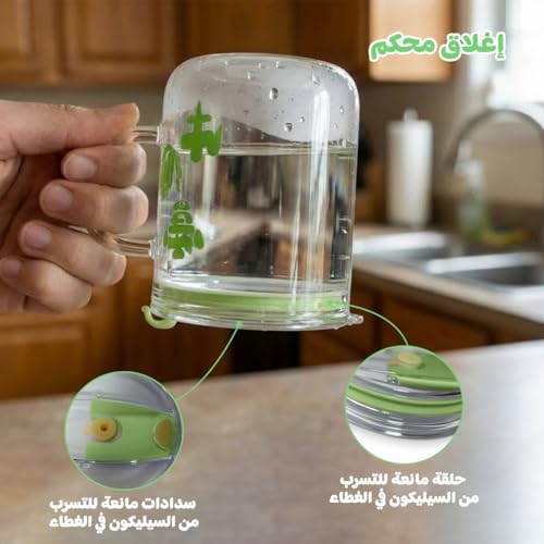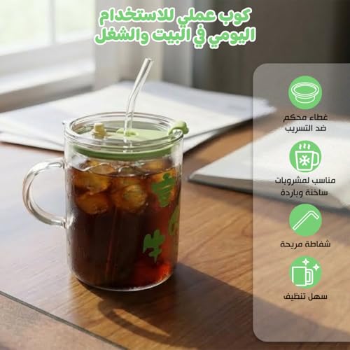 - رشفة بدون انسكابات: كوب زجاجي مع ماصة ومقبض يحافظ على مشروبك ثابتًا من المطبخ إلى المكتب. يساعد الغطاء المحكم المقاوم للتسرب على منع حوادث الأكياس الفوضوية أثناء الاستمتاع بالقهوة المثلجة أو العصير أو الحليب أو الشاي.