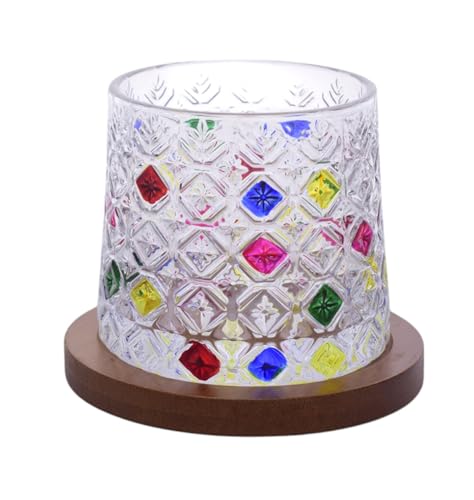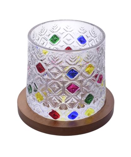 Generic - كوب زجاجي مع صحن خشبي - متعدد الألوان