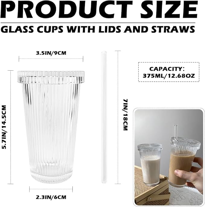 - تتضمن العبوة: تتضمن هذه المجموعة كوب شرب زجاجي مخطط بغطاء وشفاطة، يمكنك استخدامه لصنع الشاي المثالي وشاي الحليب والصودا والقهوة المثلجة أو العصير أو أي مشروب ممتع آخر.