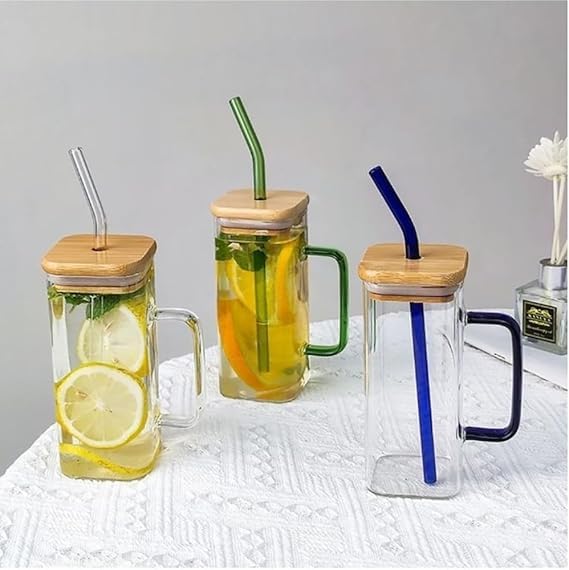 - رائعة وبسيطة: تتميز أكواب الشرب المربعة هذه بجسم شفاف بمقبض ملون، مما يخلق مظهرًا أنيقًا وجذابًا بصريًا. مثالية للترطيب اليومي واستهلاك المشروبات، خاصة للنساء.