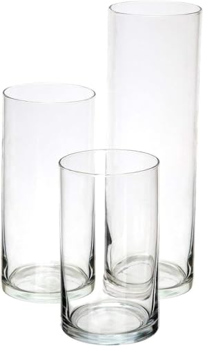 Generic - مزهرية أسطوانية من الزجاج للزينة المركزية لطاولة الزفاف، 3 قطع