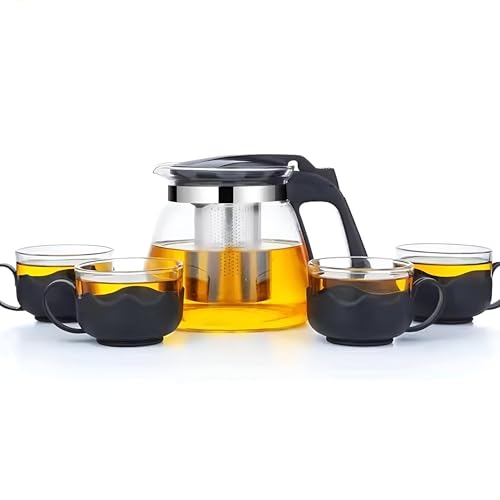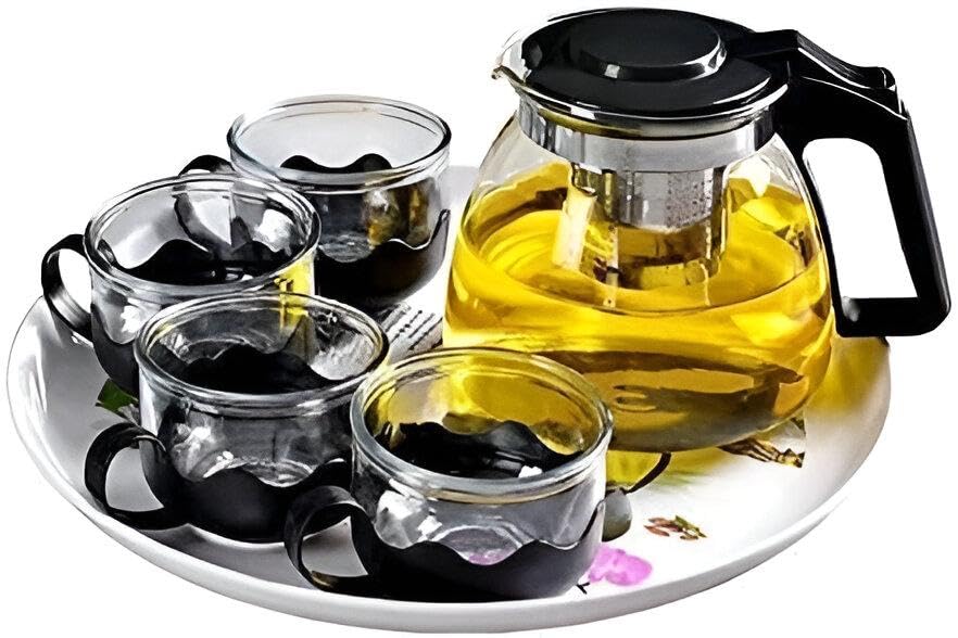- تتضمن مجموعة التقديم المكونة من 5 قطع إبريق شاي مع مصفاة مدمجة وأربعة أكواب شاي، جميعها مصنوعة من زجاج البوروسيليكات يخلق التصميم المتماسك خدمة شاي نظيفة وأنيقة، ويضمن التوحيد عند تقديمه للضيوف، ويتيح لك الاستمتاع بنفس الوضوح عبر المجموعة بأكملها.