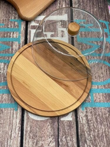 Generic - غطاء قبة زجاجية مع طبق تقديم بقاعدة خشبية، حامل دائري لعرض الكيك مع غطاء، 30 سم (قبة شفافة)
