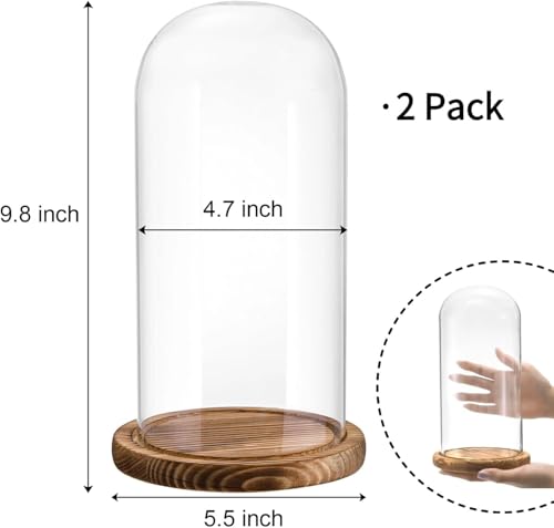 - مجموعة من قطعتين: تتضمن قبتين زجاجيتين شفافتين مع قاعدتين خشبيتين لعرض الزهور والديكورات المنزلية بأناقة