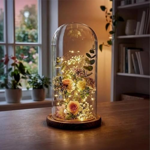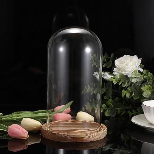 Generic - قبة زجاجية مع قاعدة خشبية، غطاء عرض شفاف، حامل زهور، ديكور منزلي، قطعتين