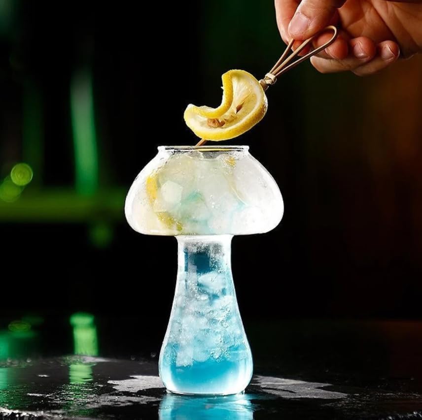 Generic - كوب مشروبات زجاج للكوكتيل بتصميم على شكل فطر، مناسب للاستخدام المنزلي أو المناسبات، سعة 280 مل، شفاف، 2 قطعة