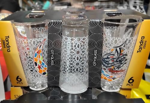 Generic - طقم كاسات من الزجاج بنقشة مستوحى من شهر رمضان، 6 قطع (رمضان كريم)
