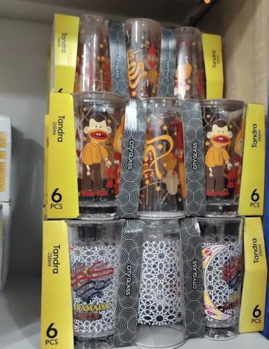 - مجموعة كاملة: يحتوي طقم الكاسات الزجاجية هذا على 6 قطع مزينة بتصاميم رمضان مبهجة وتتألق برسومات لشخصيات ملونة ونقشات زخرفية تعكس الأجواء الاحتفالية للشهر الفضيل.