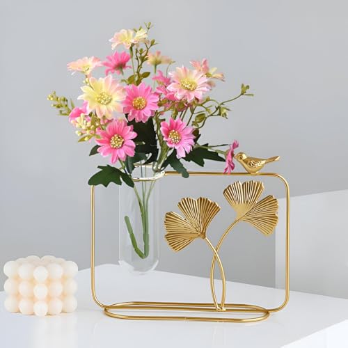 Generic - فازة زهور زجاج أنيقة بسعة كبيرة مع إطار معدن معزز مناسبة لعرض الأزهار والنباتات والتنسيقات الصغيرة في أي غرفة 1 قطعة واحدة