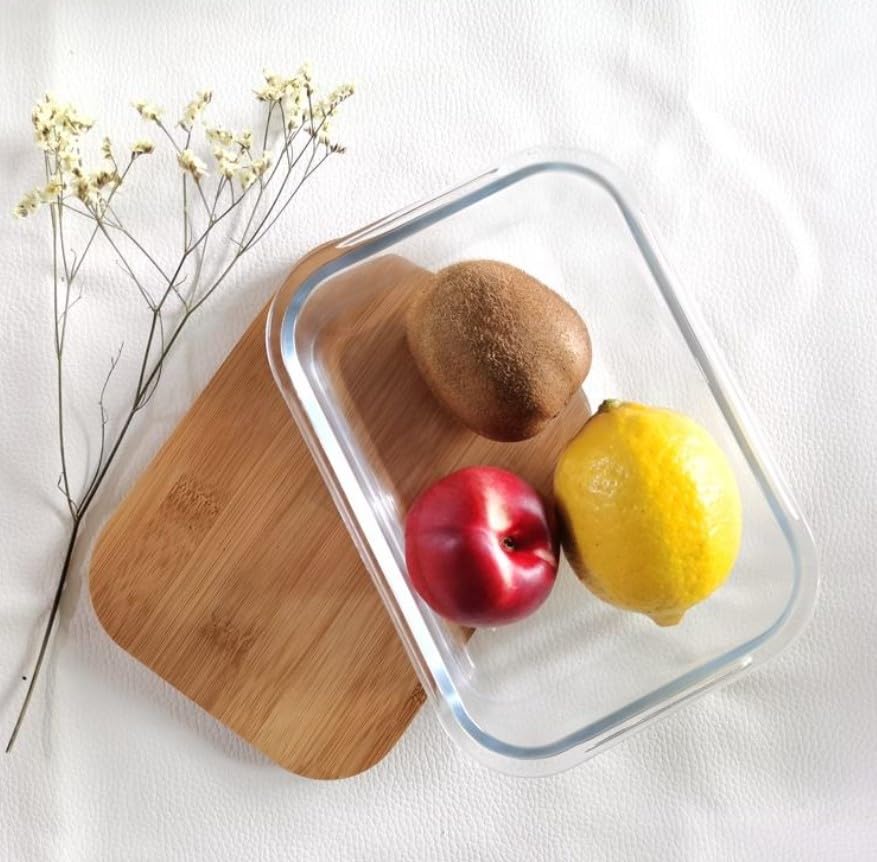 - تصميم مزدوج الأغراض: وعاء زجاجي مع جزء علوي من الخيزران الطبيعي يمكن استخدامه كلوح تقطيع، مثالي لإعداد الوجبات وتخزينها