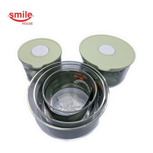 Smile House - علب تخزين طعام زجاجية - مجموعة محكمة الغلق 5 قطع (2 × 88 ملم + 2 × 122 ملم + 144 ملم)