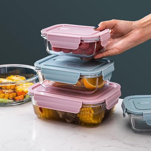 Generic - حاويات تخزين طعام زجاجية بأغطية محكمة الإغلاق، وردي، 3 قطع، 410 مل، 680 مل، 1040 مل