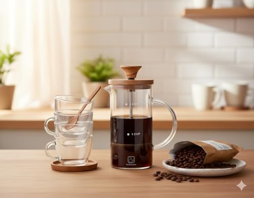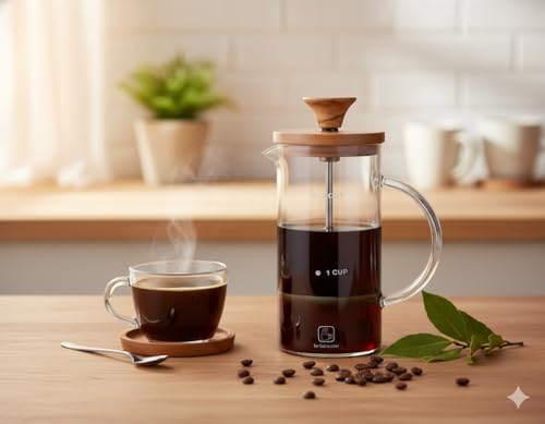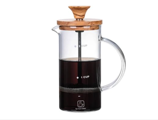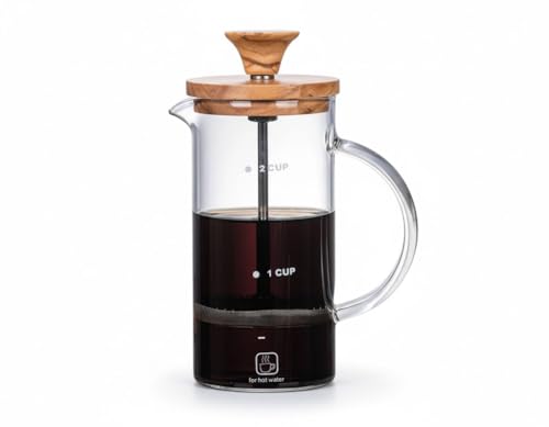 - السعة: ماكينة تحضير القهوة الفرنسية بسعة 2 كوب مثالية لتخمير القهوة الغنية واللذيذة، مع علامات قياس واضحة للتخمير الدقيق