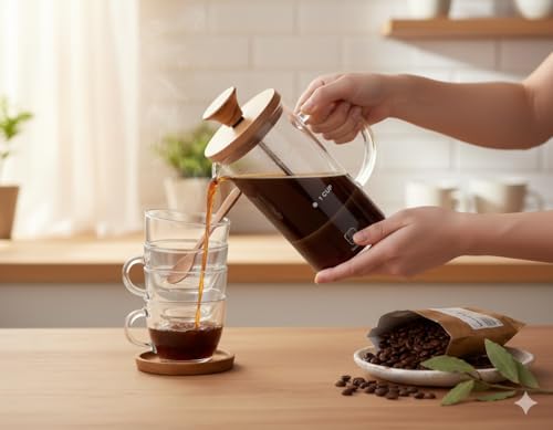 - خامات ممتازة: مصنوع من إبريق زجاج البوروسيليكات المقاوم للحرارة ومكبس متين من الستانلس ستيل للاستخدام اليومي الموثوق به
