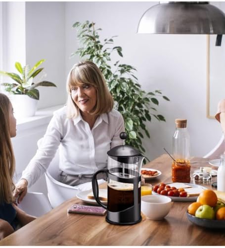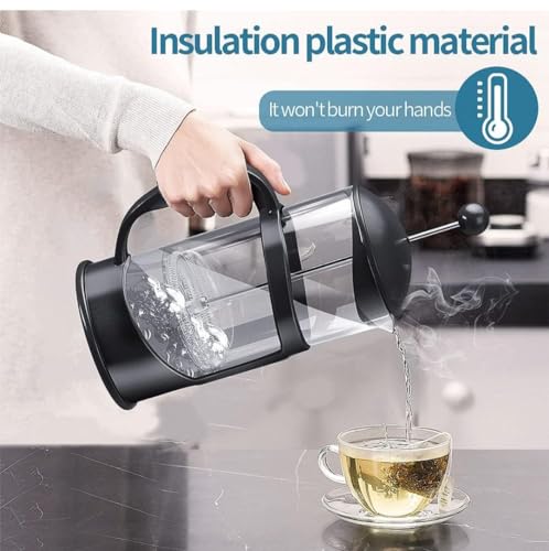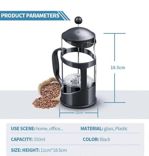 Generic - ماكينة تحضير الشاي الفرنسية من كوب واحد من الزجاج لأفضل مذاق للقهوة والشاي بسعة 350 مل، زجاج البوروسيليكات والبلاستيك والستانلس ستيل، بلون أسود