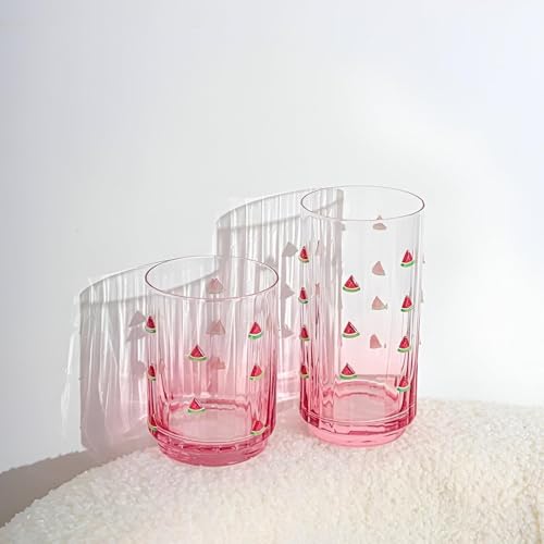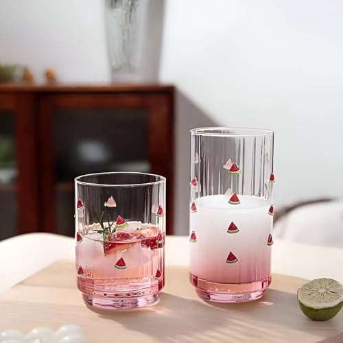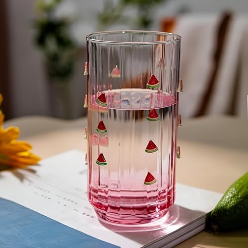Generic - مجموعة اكواب فواكه زجاجية - مجموعة اكواب شفافة مكونة من 4 قطع بتصميمات فنية مرتفعة للفواكه، حجم 400 مل، مثالية لتقديم المشروبات المنعشة بلمسة مبهجة.
