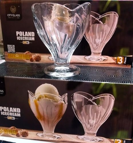 Generic - اكواب ايس كريم زجاجية، اوعية حلوى شفافة، مجموعة من 3 قطع