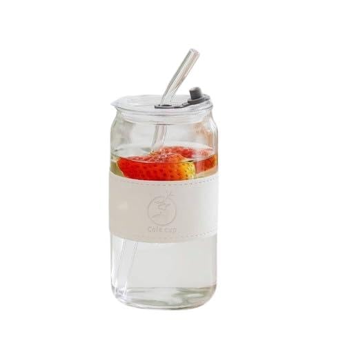 Generic - برطمان زجاجي بغطاء، سعة 500 ملليلتر بتصميم علب مع غطاء أكريليك شفاطة زجاجية، ومقبض جلد للمشروبات الساخنة والباردة، لتقديم المشروبات بأناقة في أماكن عصرية (قطعة واحدة لون عشوائي)