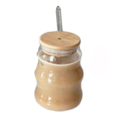 - التصميم: تصميم برطمان زجاجي منحني فريد مع غطاء خشبي وشفاطة معدنية، مثالي لتقديم المشروبات بأناقة.