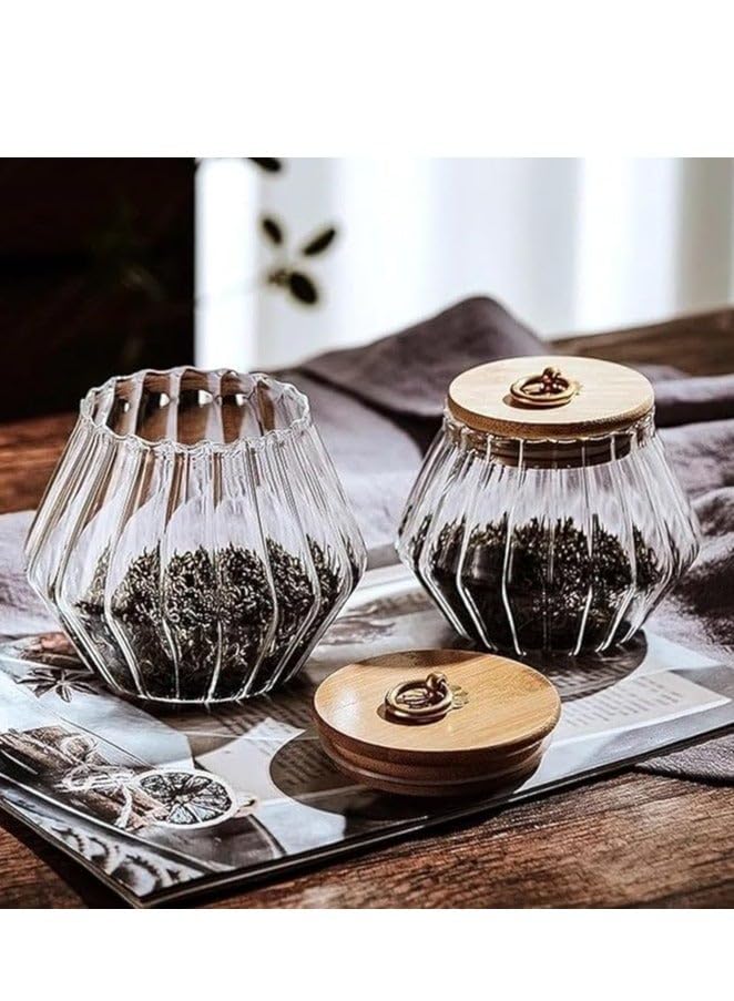 Generic - برطمانات زجاجية مع اغطية خشبية محكمة الغلق خالية من البيسفينول ايه، مثالية لتخزين الطعام والبسكويت والقهوة والمكسرات، قابلة لاعادة التدوير وتتميز بحفظ الطعام لفترة طويلة.