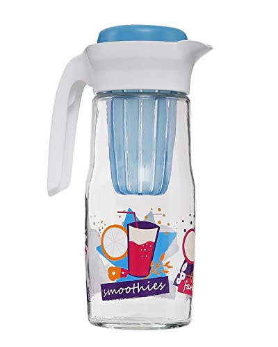 Generic - أبريق عصير زجاج مع صفايه بلاستك, ازرق