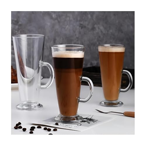 Generic - اكواب لاتيه زجاجية - مجموعة من 3 اكواب ماسون شفافة بمقابض للمشروبات الساخنة والشاي والاسبريسو والكابتشينو والشوكولاتة الساخنة، 300 مل لكل منها
