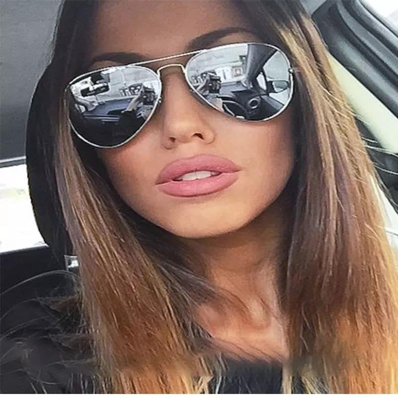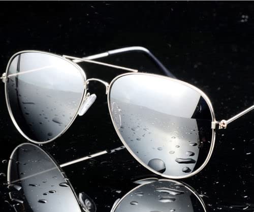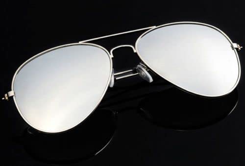 other - نظارة شمسية للجنسين بعدسات مرأة زجاجية - حماية من الاشعة الفوق بنفسجية - فضي