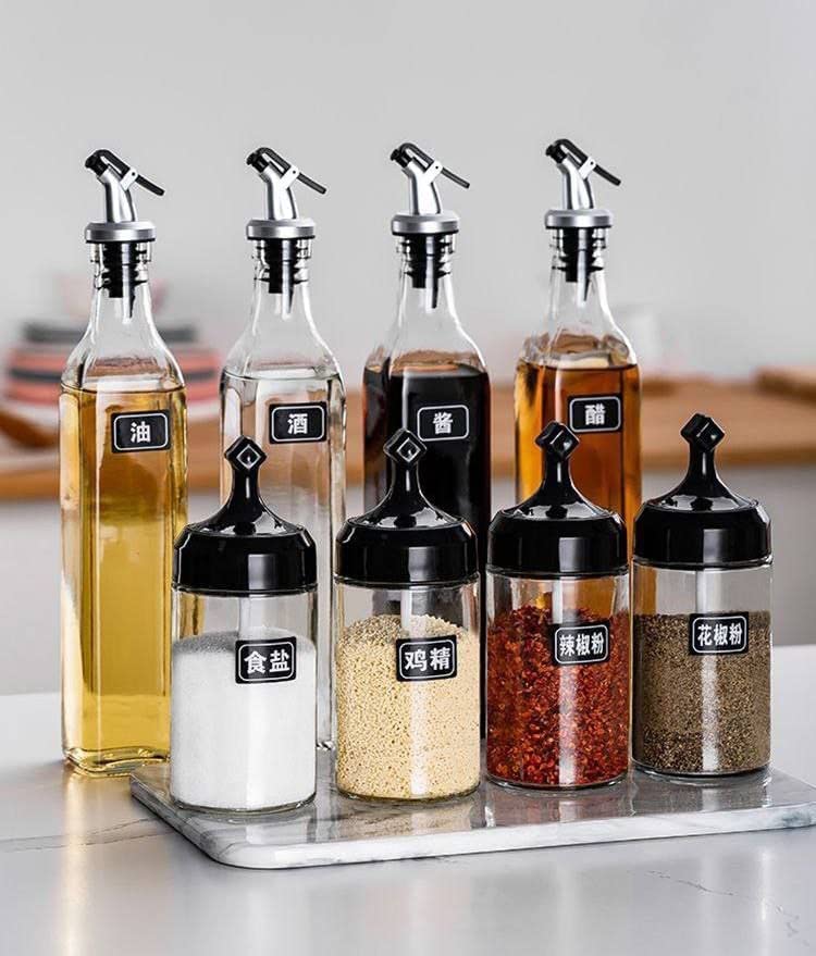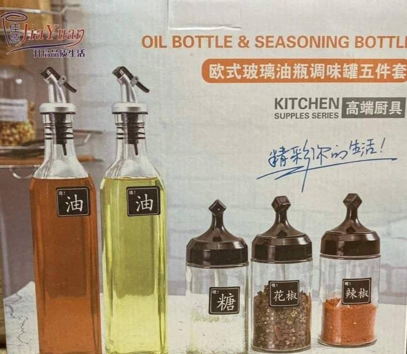 Generic - مجموعة ادوات المطبخ مكونة من زجاجات الخل والزيت وبرطمانات التوابل الزجاج 5 قطع