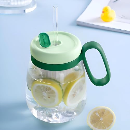 Generic - مج زجاجي - مج عصير أنيق بفتحتين للشفاطة أو الشرب المباشر، مصفاة داخلية كبيرة للفواكه والأعشاب، تصميم سهل التنظيف، سعة 500 مل