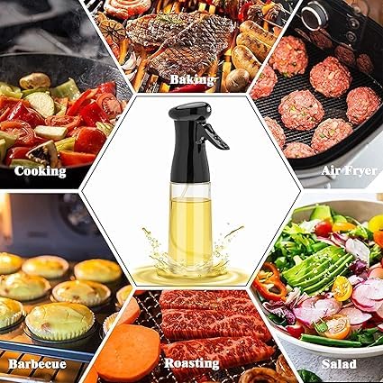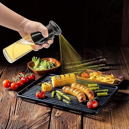 Generic - بخاخة زيت زجاج للمطبخ، موزع زيت قابل لإعادة الملء، متعدد الاستخدامات للطبخ والشواء والسلطة