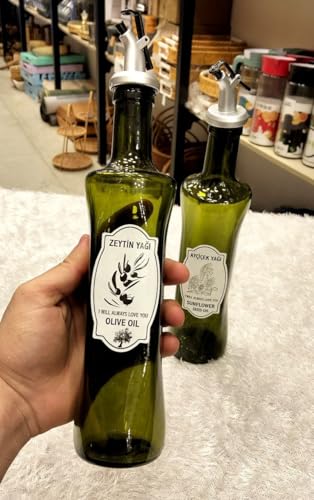 - تصميم فاخر: زجاجة زيت زيتون زجاجية خضراء أنيقة مع ملصق أنيق وفوهة صب احترافية لتوزيع دقيق.