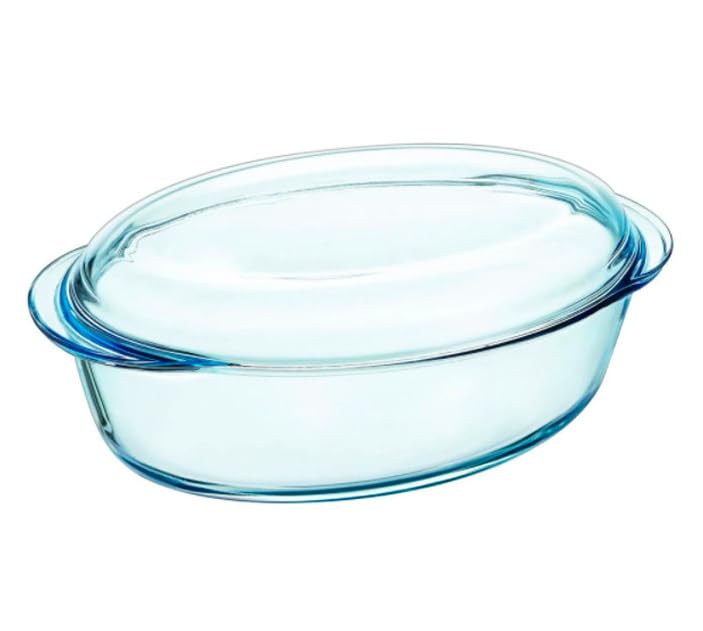Generic - طبق فرن زجاجي بيضاوي مع غطاء، سعة 4 لتر، طبق كسرولة زجاجي شفاف