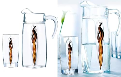 Generic - طقم مكون من شفشق زجاجي و6 أكواب شرب بتصميم لهب، شفاف