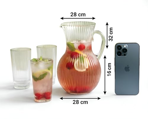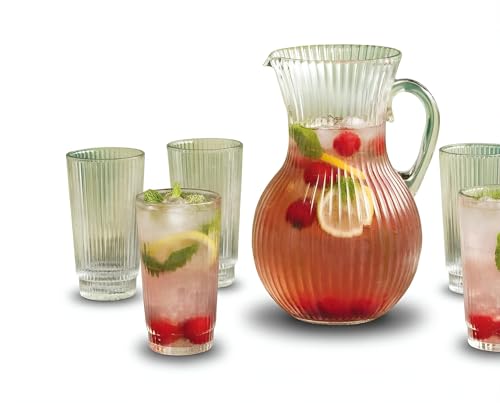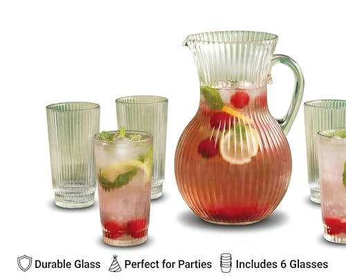 Generic - طقم ابريق زجاجي وكؤوس - تصميم شفاف مضلع مع 6 اكواب مطابقة، زجاج البوروسيليكات المتين مثالي للحفلات والكوكتيلات وتقديم المشروبات اليومية.