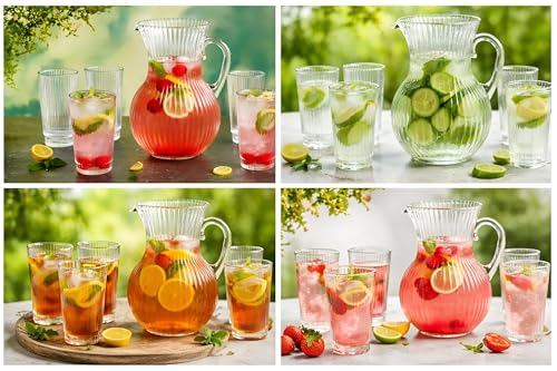 - مصنوعة من زجاج متين عالي الجودة، تقاوم هذه المجموعة التقطيع والتشقق حتى مع الاستخدام المتكرر، مما يجعلها مثالية لتقديم مجموعة متنوعة من المشروبات - من الماء الغني بالحمضيات والشاي المثلج إلى الكوكتيلات - دون المساس بالوضوح أو السلامة الهيكلية.