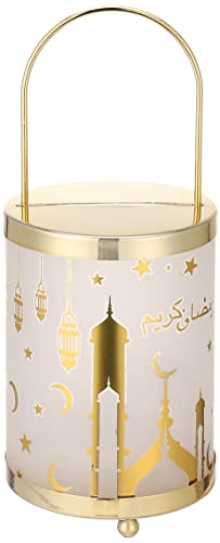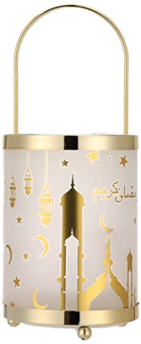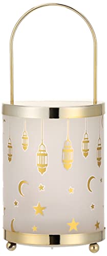 Generic - فانوس رمضان زجاجي مع نظام اضاءة بتصميم هلال ونجوم للديكور - لون ذهبي وابيض