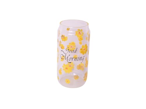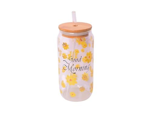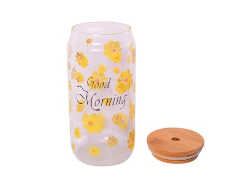 Generic - مج قهوة مثلجة زجاجي دائري الشكل مع شفاطة وغطاء خشبي، متوسط - شفاف