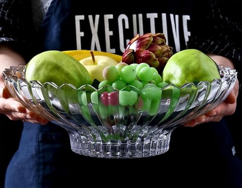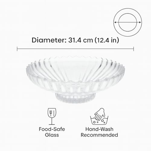 Generic - وعاء زجاجي للسلطة - وعاء تقديم بقاعدة للسلطة والفواكه والقطع المركزية، زجاج شفاف - 31.4 سم، شفاف