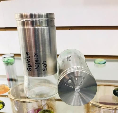 Generic - طقم ملاحة ملح وفلفل زجاجية، 2 قطعة برطمان توابل من فولاذ مقاوم للصدأ، قابلة لاعادة الملء ومتينة وسهلة التنظيف، تصميم كلاسيكي (5.5× 11.0 سم)