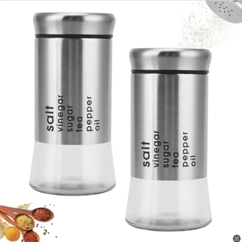 Generic - طقم هزازات زجاجية للملح والخل مع اغطية من الستانلس ستيل، قطعتين