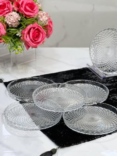 Generic - طقم أطباق تقديم زجاجية – 6 قطع – بحواف مرتفعة (شكل توست) – أوعية شفافة أنيقة لتقديم الحلويات والجاتوه والفواكه – مناسبة للمنازل والفنادق (شفاف, 21 سم)
