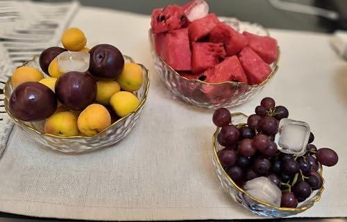 Generic - مجموعة تقديم زجاجية - اوعية زجاجية انيقة غير لامعة بحافة ذهبية، مثالية لتقديم الفواكه والسلطات والوجبات الخفيفة، تتضمن 3 اوعية باحجام مختلفة لاعدادات الطاولة المكررة ومتعددة الاستخدامات