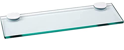 Generic - رف زجاجي للحمام مع دعامات شديدة التحمل بلون ابيض، دعامات رفوف زجاجية عائمة من الستانلس ستيل - ملحقات مصبوبة، رف حمام زجاجي شفاف مثبت على الحائط 25 سم، مصقول