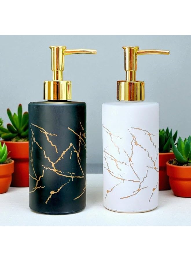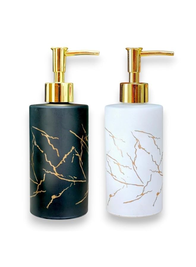 generic - طقم موزع صابون زجاجي - قطعتين، اسود وابيض