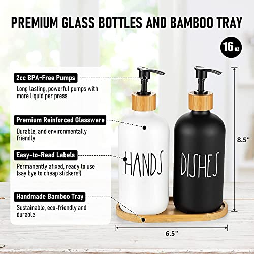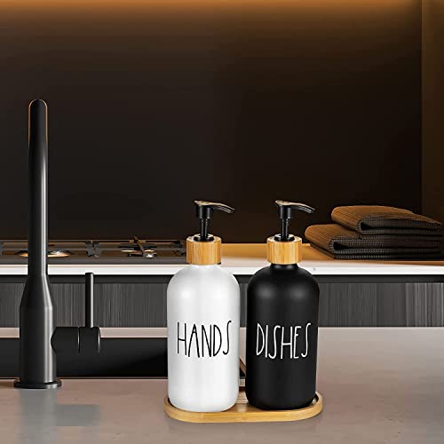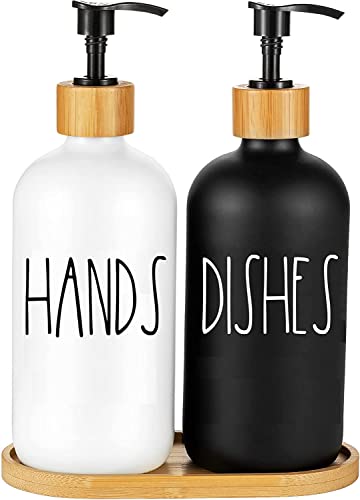 MOTYYA - طقم موزع الصابون الزجاج، يحوي موزع صابون يدوي زجاج وطبق صابونة زجاج مجموعة موزع صابون للمطبخ مناسبة لديكور المطبخ باللونين الأسود والأبيض أسود وأبيض
