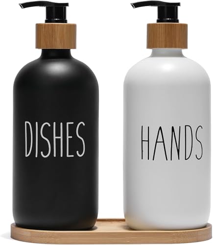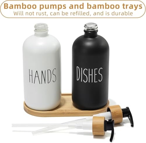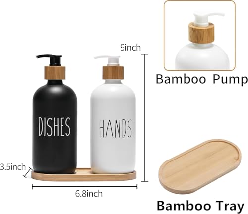 Generic - مجموعة موزع صابون زجاجية ، موزع صابون أطباق لحوض المطبخ، موزع صابون اليد للحمام بمضخة خيزران وصينية صابون، ديكور منزل المزرعة ( أسود وأبيض)