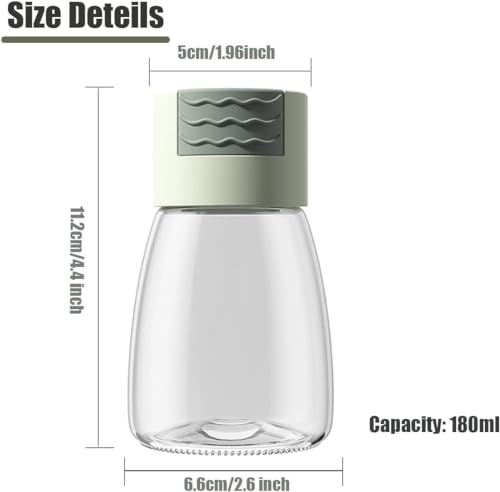 - 🧂 تحكم دقيق في الكمية: يخرج مقدار ثابت من التوابل مع كل ضغطة، لمنع الاستخدام الزائد.
